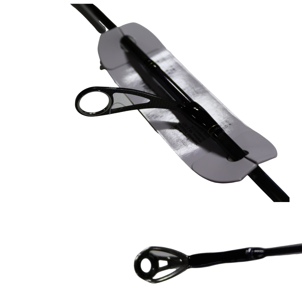 Die Ruten, die ein 3,5-14g Wurfgewicht aufweisen, sind mit einem Fuji TVS Rollenhalter ausgerüstet, welcher mit zwei seitlichen Aussparungen versehen ist und den direkten Kontakt mit dem Blank herstellen kann.