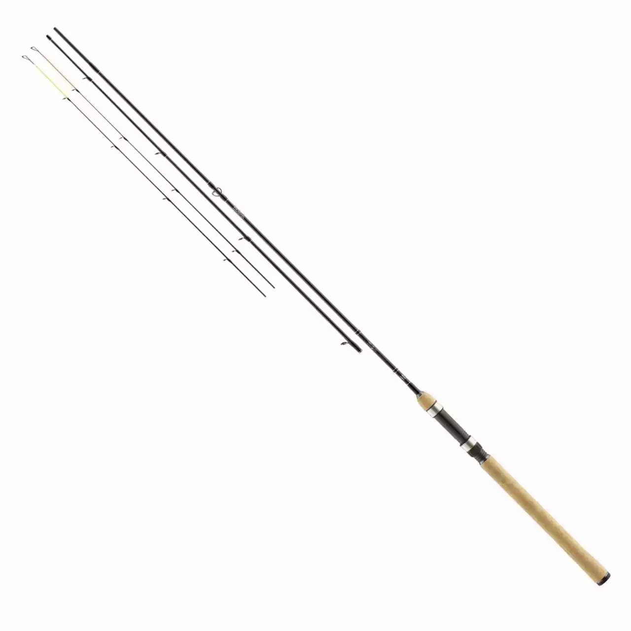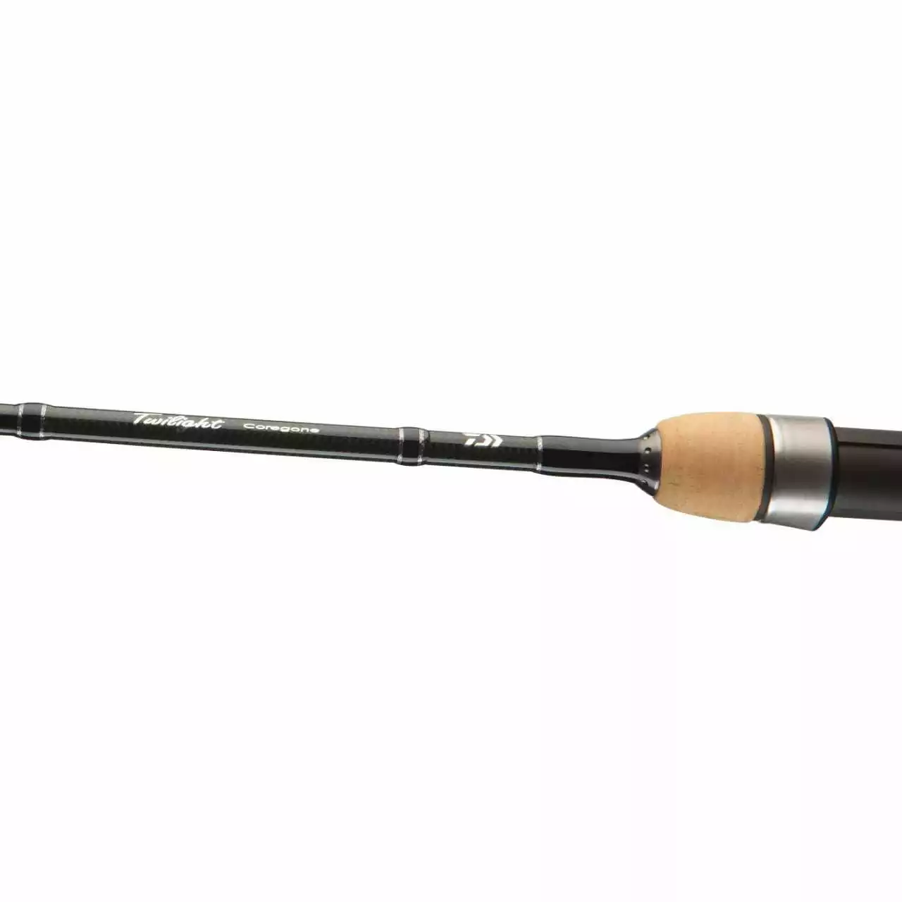 Ausgestattet ist die Twilight Coregone mit zwei Wechselspitzen. Eine davon besteht aus Glasfaser und die Andere aus Kohlefaser. Die rote Spitze eignet sich für Bleie mit einem Wurfgewicht von 5-10g. Die Gelbe hingegen ist mit Gewichten um die 3-5g optimale ausgelastet.