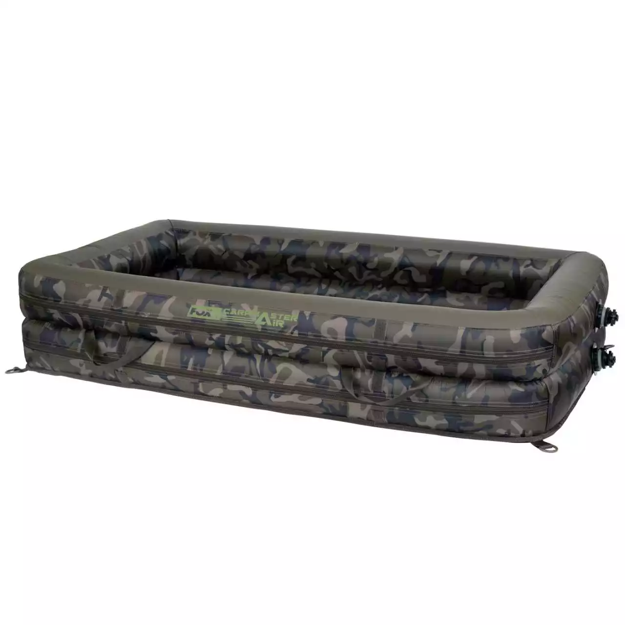 Die Fox Carpmaster Air Mat kann als klassische Cradle-Matte, aber auch umgedreht genutzt werden: Wenn die Matte umgedreht wird, lassen sich gerade sehr große Karpfen viel einfacher auf der robusten, durchgehenden Fläche mit darunter geschobenen Armen greifen und sie sind so auch besser zu kontrollieren.