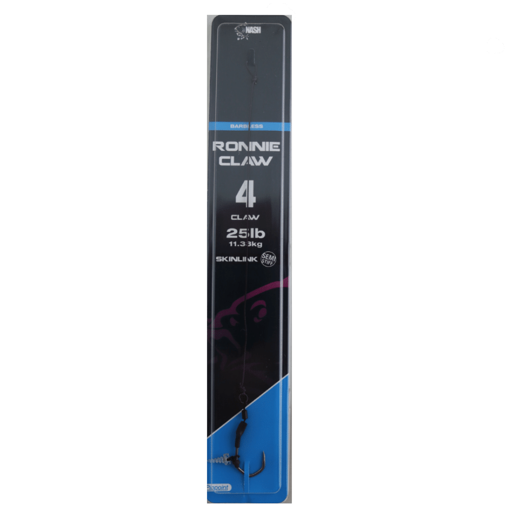 Dank der Plastik-Swivel-Köderschrauben ist die Ködermontage ganz einfach ohne Nadel und Stopper möglich. Der Ronnie Swivel erlaubt einen einfachen Hakenwechsel für eine Wiederverwendung des Vorfaches. Schlaufen-Achterknoten für bequemes Wechseln des Rigs. Boom aus Skinlink für effektives Rig-Resetting