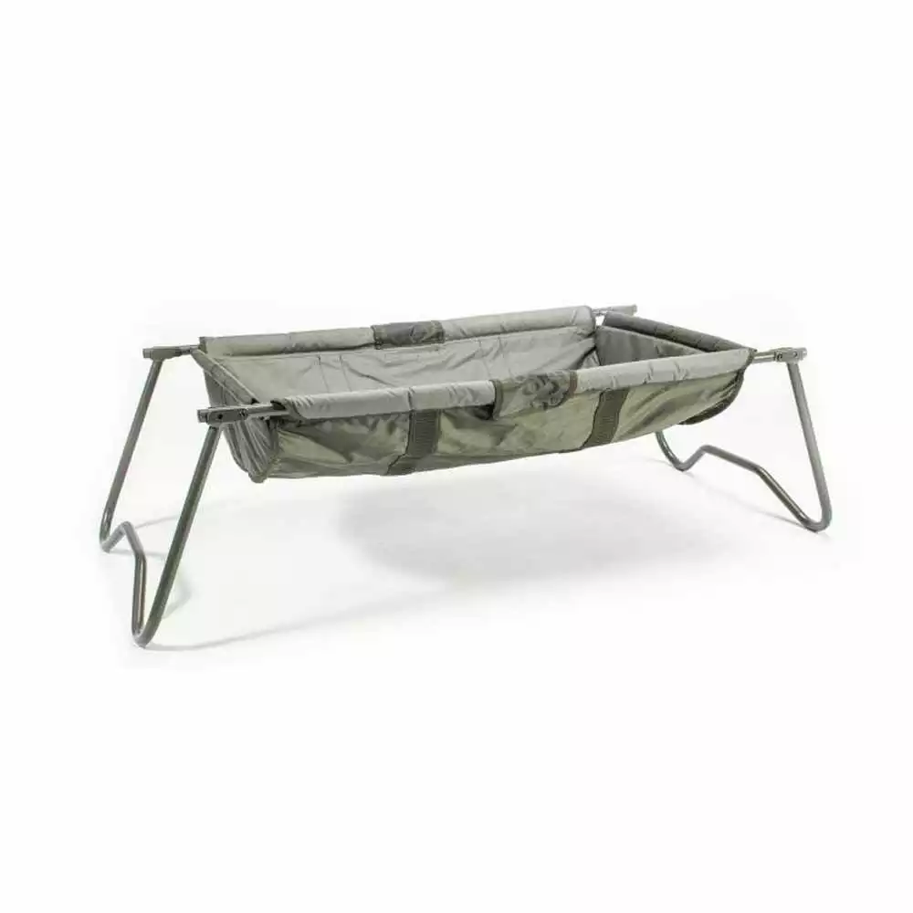 Nicht zu übersehen ist ebenfalls das, durch die Zusammenklappfunktion der Cradle, optimierte Packmaß. So kannst du die Abhakmatte problemlos auf deinem Barrow (nicht inkludiert) bis zu deinem Angelplatz transportieren und hast weitaus mehr Platz für andere Angeltackles als bei anderen Cradles. Auch der Aufbau ist mit den Klettverschlüssen eine Sache von Sekunden.