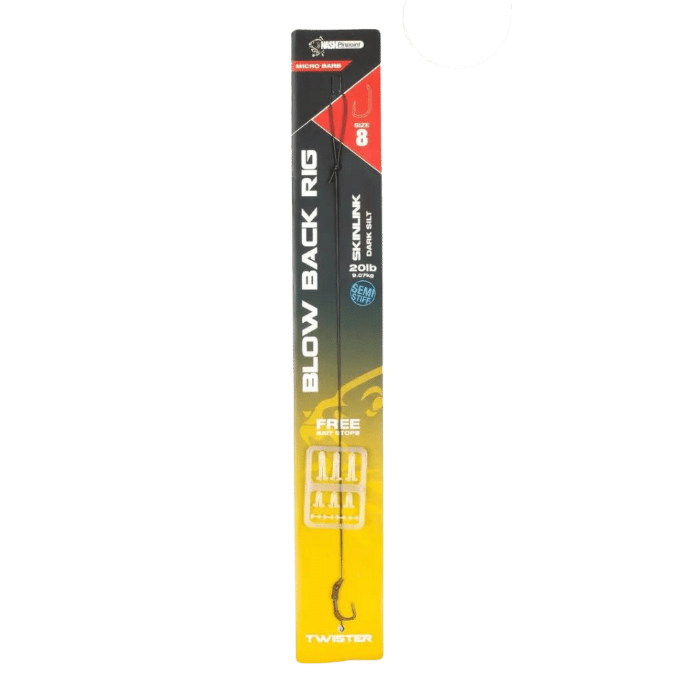 Kevin Nash’s Blow Back Rig – das wohl vielseitigste Rig aller Zeiten. Gebunden mit Skinlink und einem Pinpoint Twister. Das Vorfach sinkt rasch und lässt den Haken extrem aggressiv eindrehen. Die exakte Positionierung des Blow Back Tubes sorgt für unschlagbare Anti-Eject Eigenschaften.