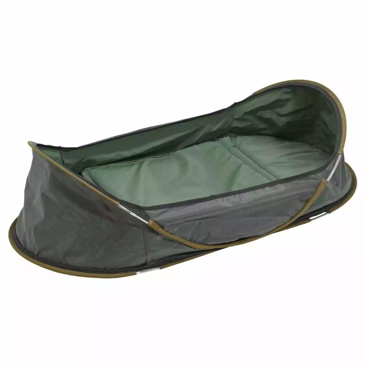 Das Pelzer Pop-Up Cradle ist in Sekundenschnelle aufgebaut: Einfach aus der Tasche nehmen (Das flexible Stangensystem sorgt dafür, dass die Abhakmatte in ihre Form springt), Polster einlegen und fertig!