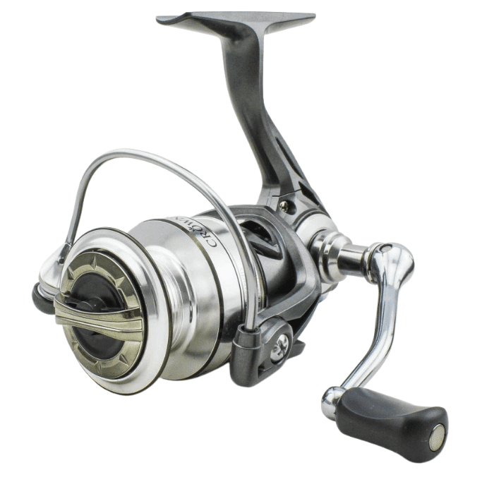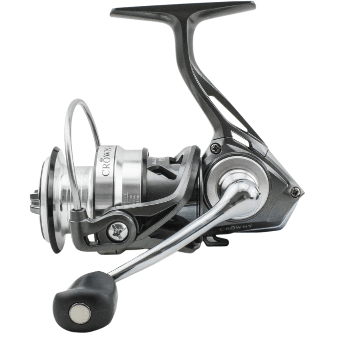 Extreme Leichtbauweise, hohe Bremskraft dank Carbonbremsscheiben (Fast Drag), präzise Schnurverlegung und ein seidenweicher Lauf, kennzeichnen diese meisterliche Spinnrolle. Die Kombination aus gunsmoke, schwarz und silber (Aluminiumkomponenten), macht aus der Crowny einen optischen Leckerbissen der Extraklasse. Abgerundet durch das zuverlässig arbeitende Getriebe und den ausbalancierten Rotor, bleiben keine Wünsche mehr offen.