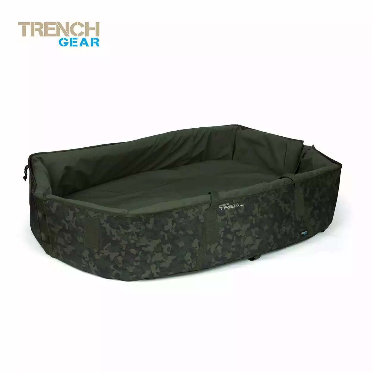Die Shimano Trench Gear Abhakmatte bietet das Aero Quiver Advanced Bag Connection System, ist passgenau für den Trolley entwickelt worden und hat Kompressionsriemen für den schnellen Transport.